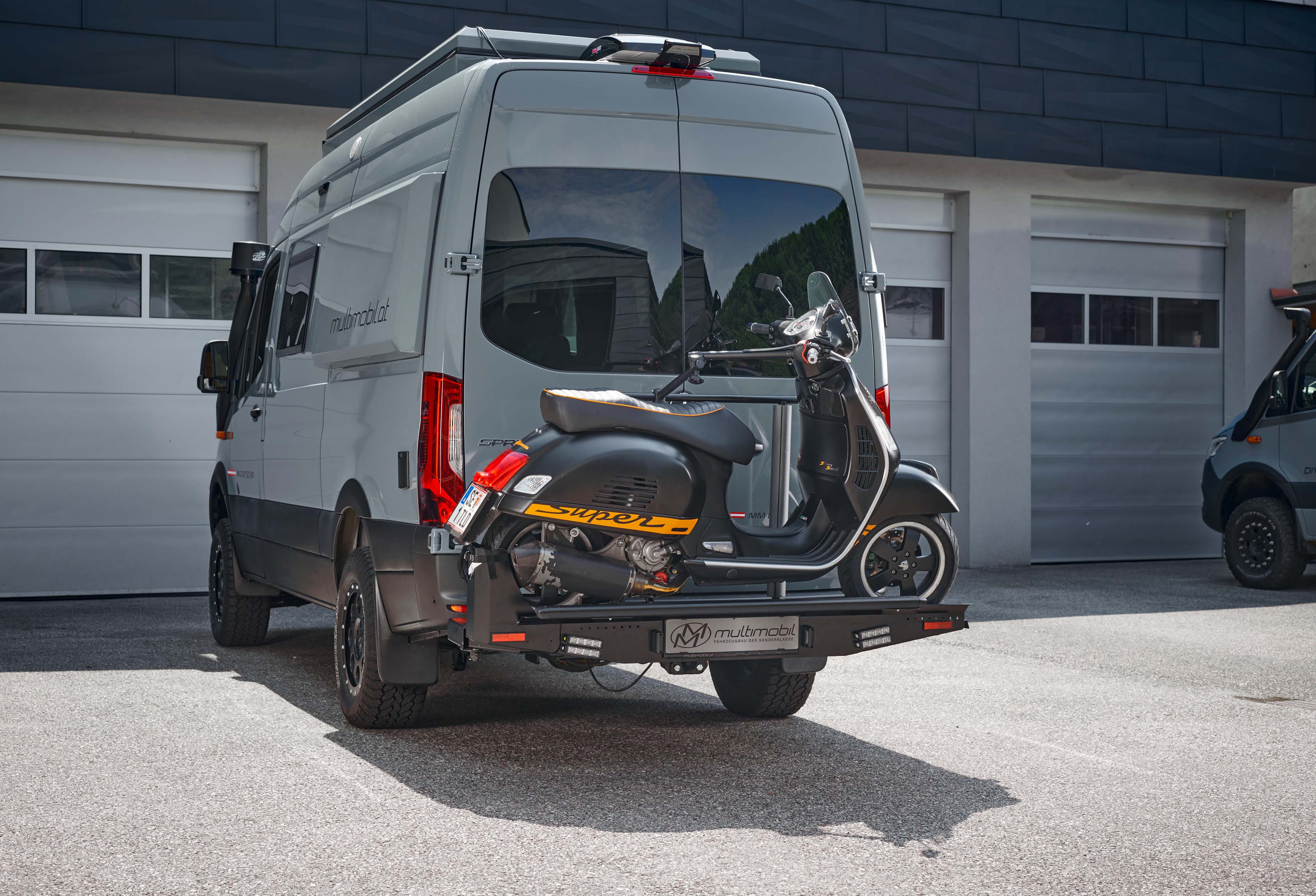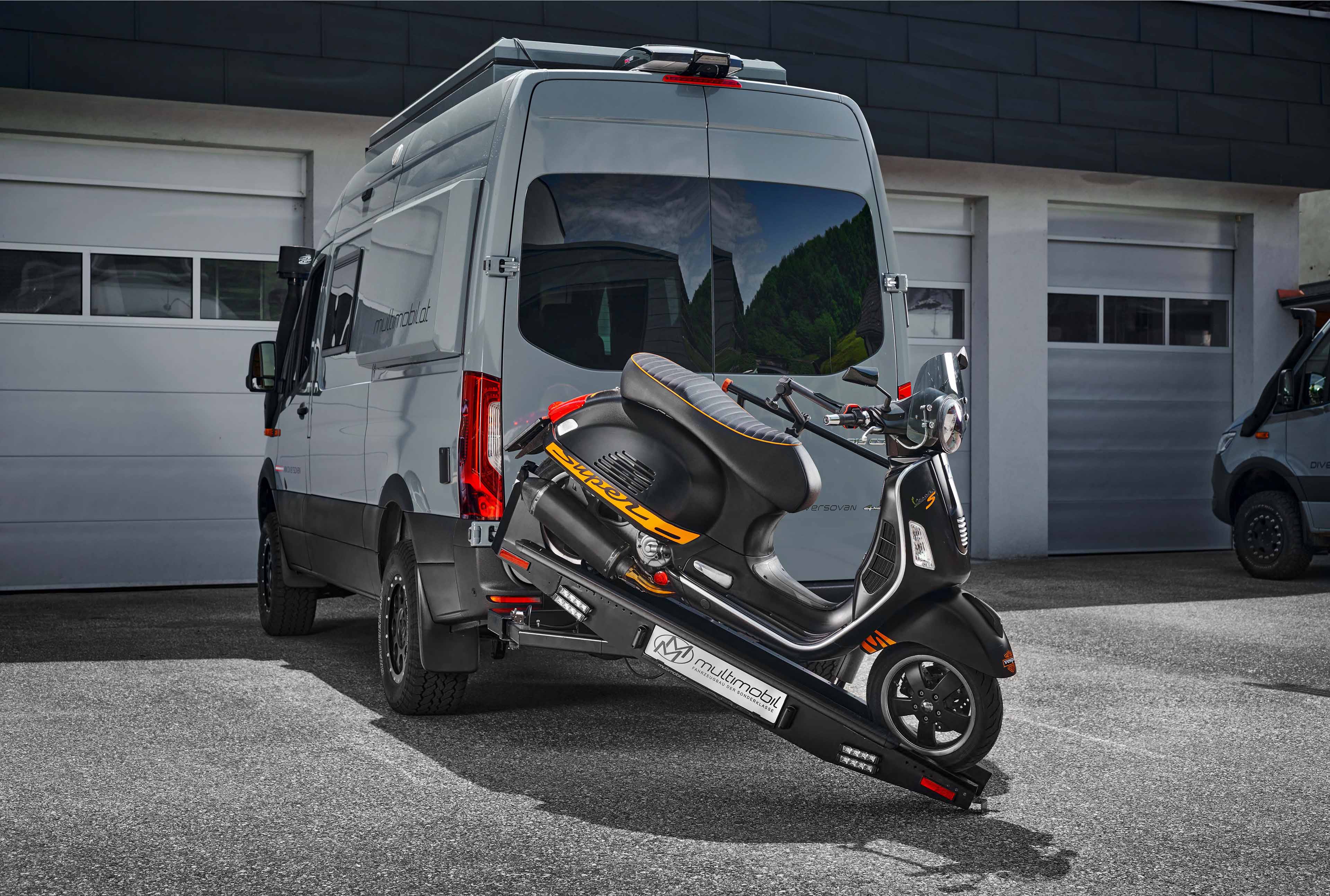 Der neue Hecklastenträger des Unternehmens Multimobil ist sowohl für leichte als auch für schweren Beladung ausgelegt. Darüber hinaus bietet der Träger durch seine Adapter vielfältige Möglichkeiten, verschiedene Dinge zu transportieren, darunter Reserveräder, Stauboxen, E-Bikes, Motorräder und mehrere Fahrräder. Mit einer beeindruckenden Tragfähigkeit von 200 kg und der einzigartigen Dreh-Kippfunktion bietet er herausragende Vorteile. Nach dem Wegdrehen ermöglicht er problemloses Öffnen der Türen und gewährleistet einen gut zugänglichen Heckbereich.